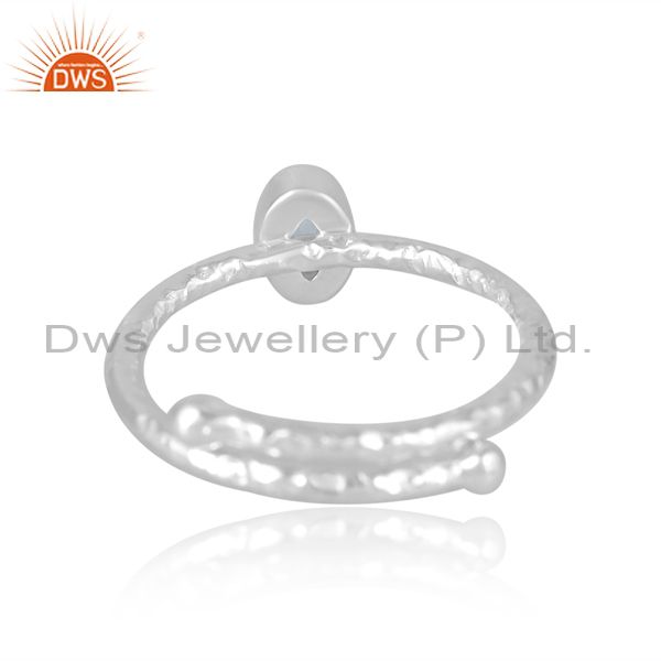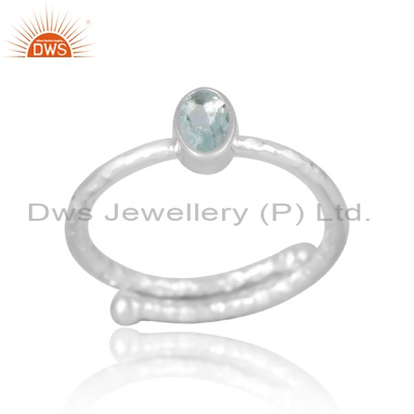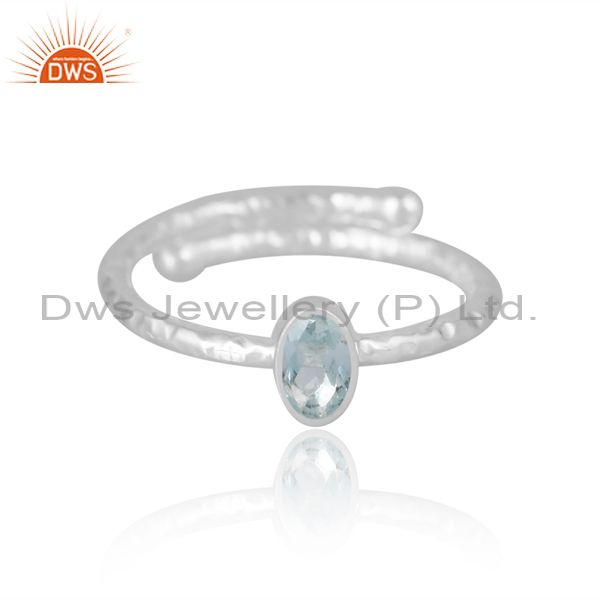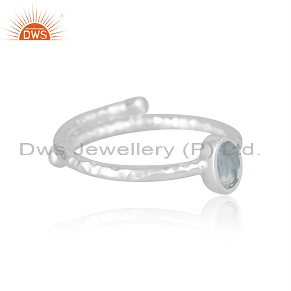 Adjustable Womens Silver Ring With Oval Aquamarine Stone