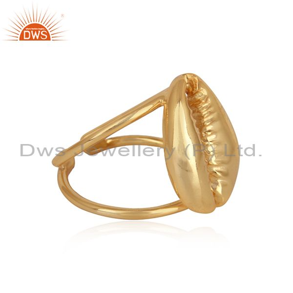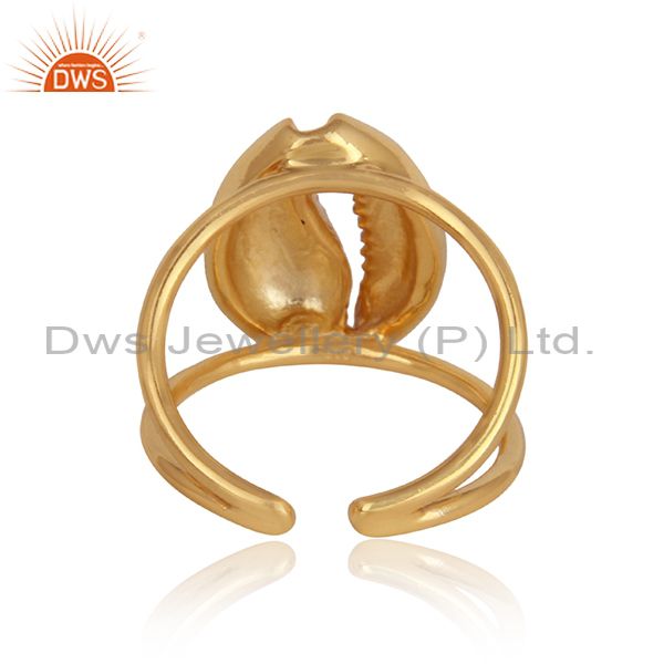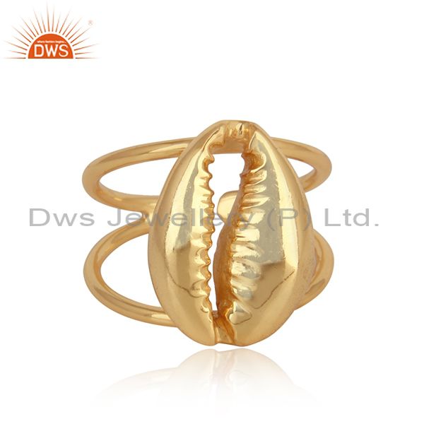 Amazing Cowrie Ring with Splited Shank in Gold on Silver 925