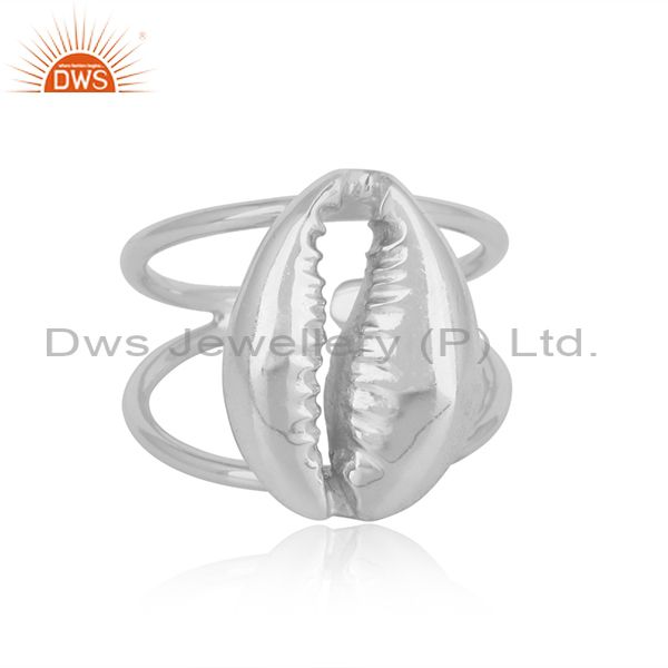 Amazing Cowrie Ring with Splited Shank in Silver 925