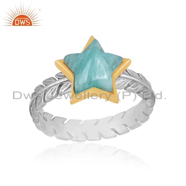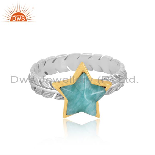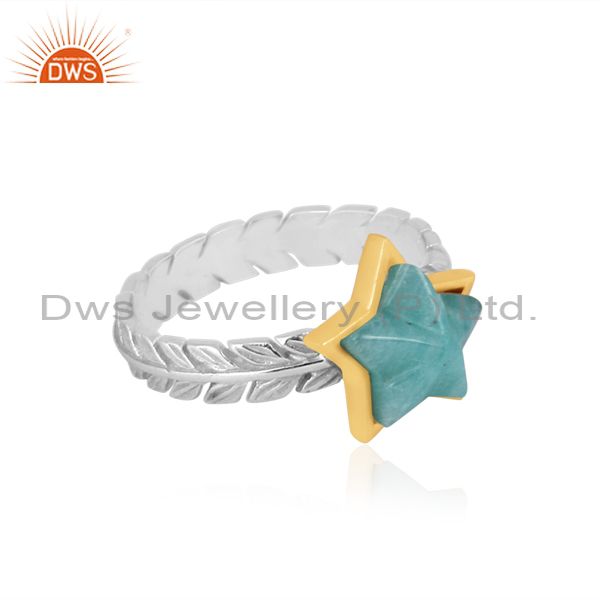 Amazonite Set Fine Silver Star Charm Statement Designer Ring