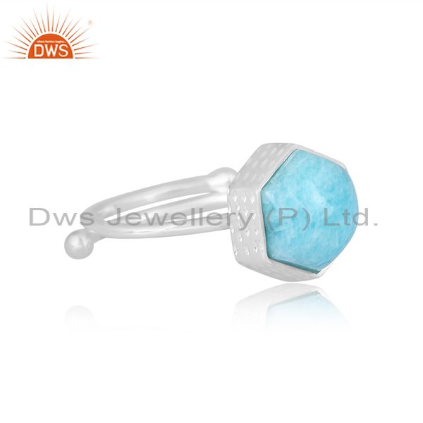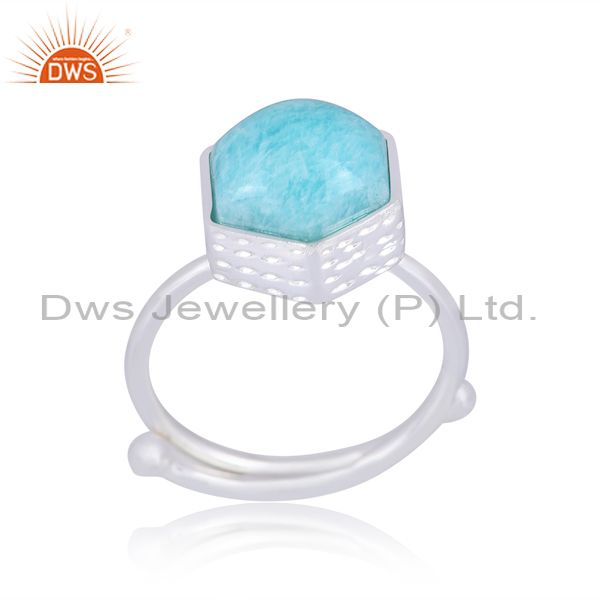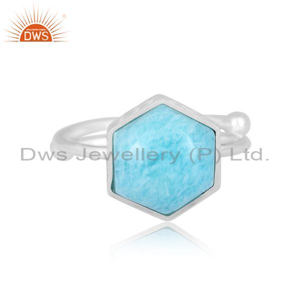 Amazonite Set Fine Sterling Silver Handmade Hexagonal Ring