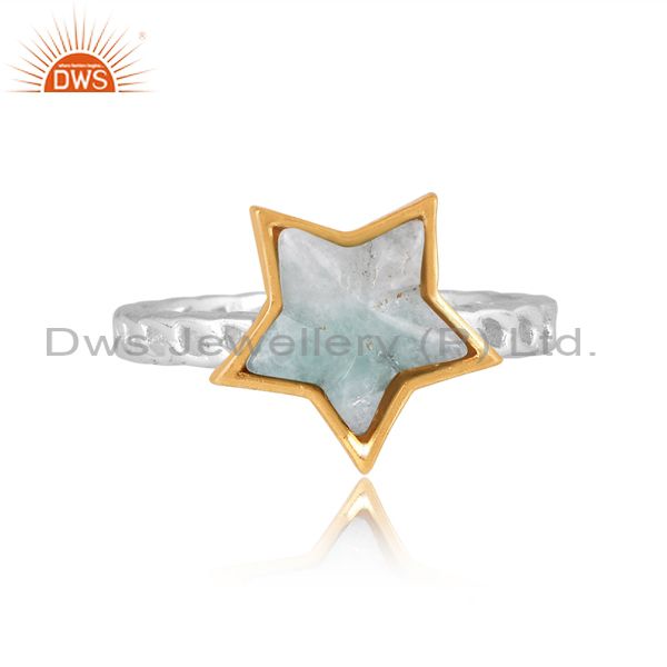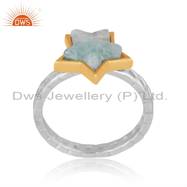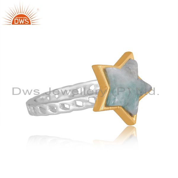 Amazonite Set Gold On Fine Sterling Silver Star Shaped Ring
