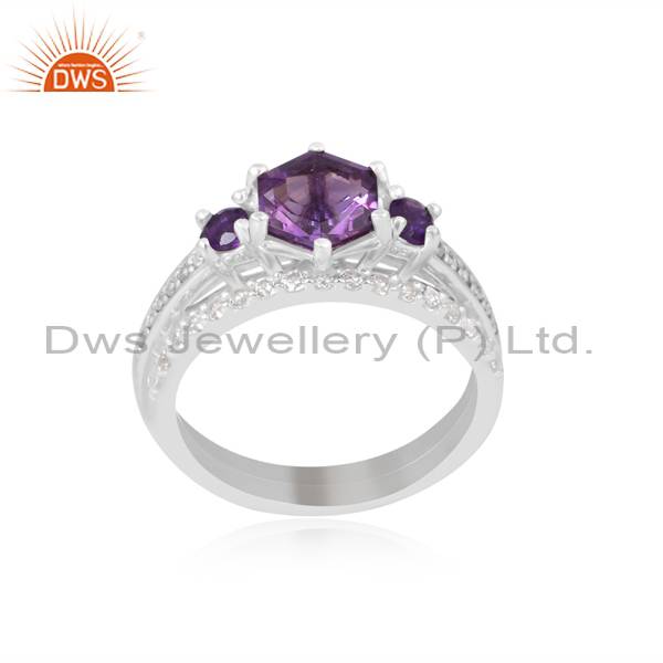 Amethyst & Cubic Zirconia Ring: Sparkling Elegance