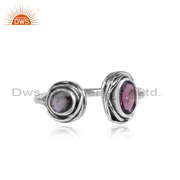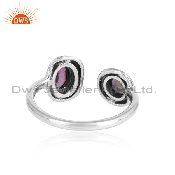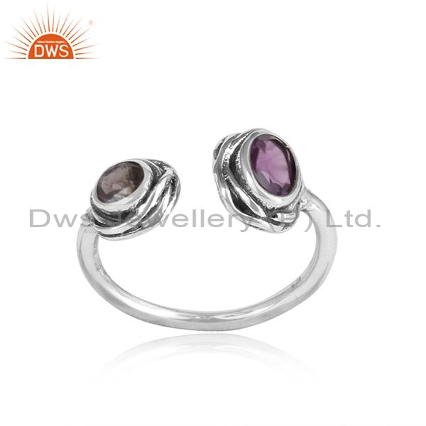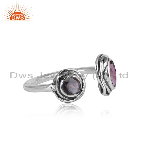Amethyst & Iolite Wrapped Sterling Silver Facing Ring