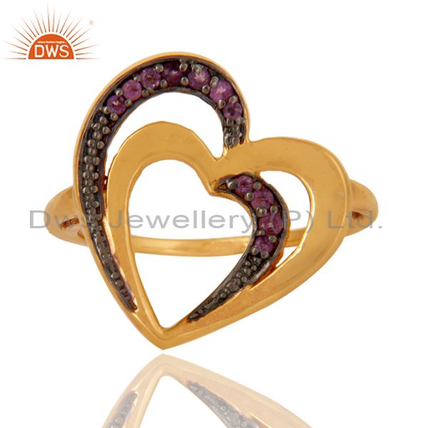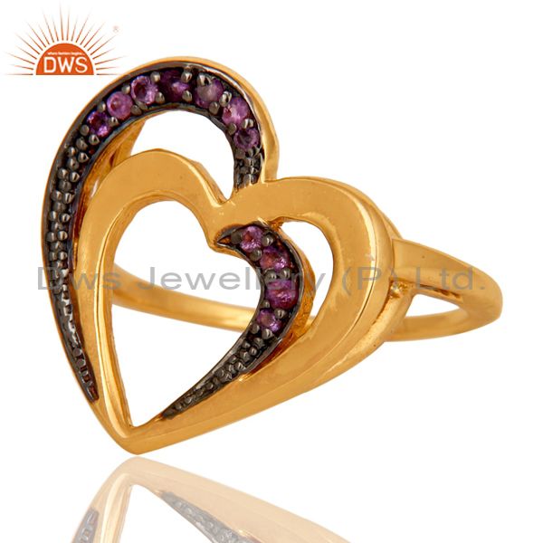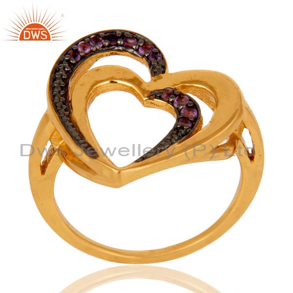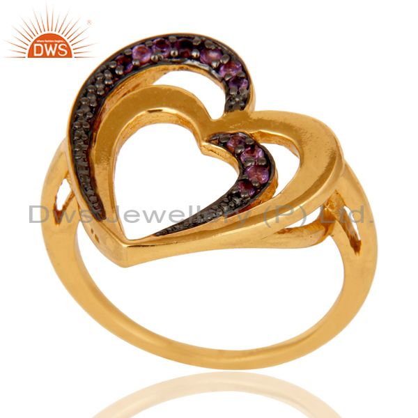 Amethyst 18K Gold Plated Heart Shape Sterling Silver Ring Love Jewelry