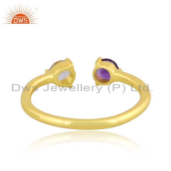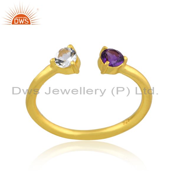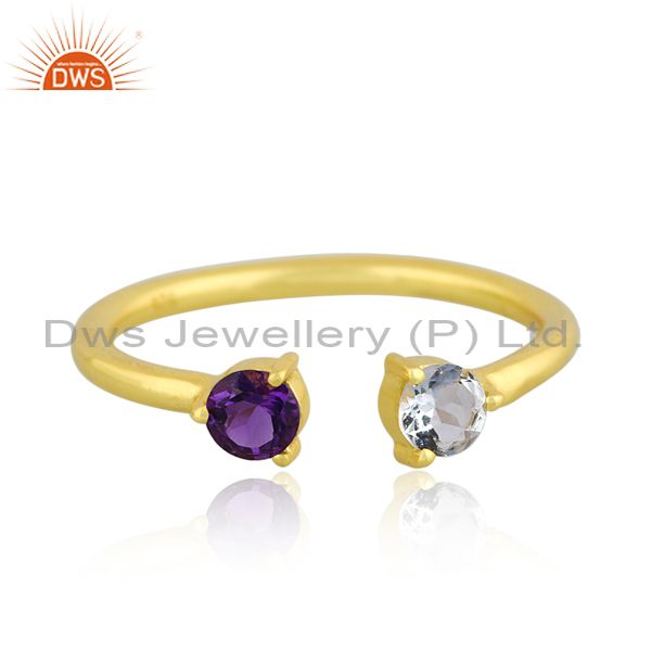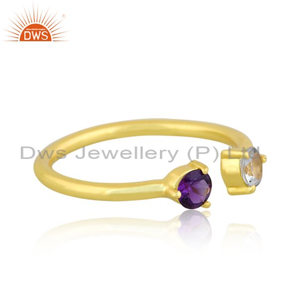 Amethyst And Aquamarine Set Gold On 925 Silver Handmade Ring