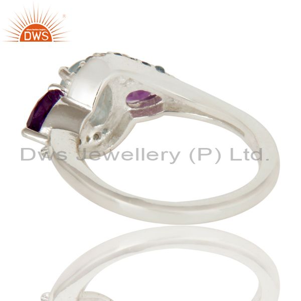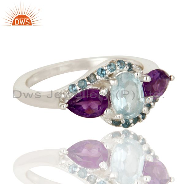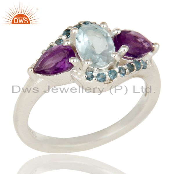Amethyst And Blue Topaz Solid Sterling Silver Statement Ring Fine Gemstone Ring