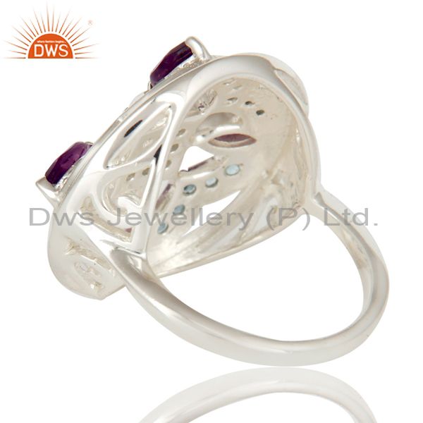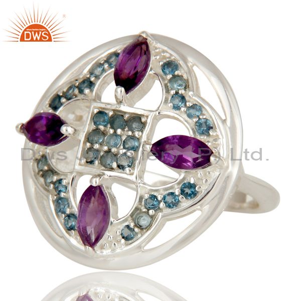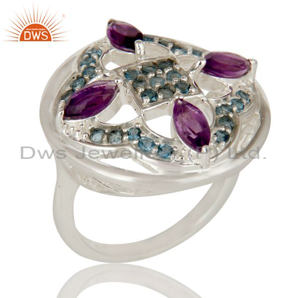 Amethyst And Blue Topaz Sterling Silver Cluster Cocktail Ring