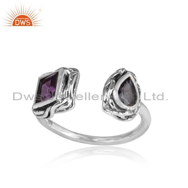 Amethyst And Iolite Set Oxidized Sterling Silver Facing Ring
