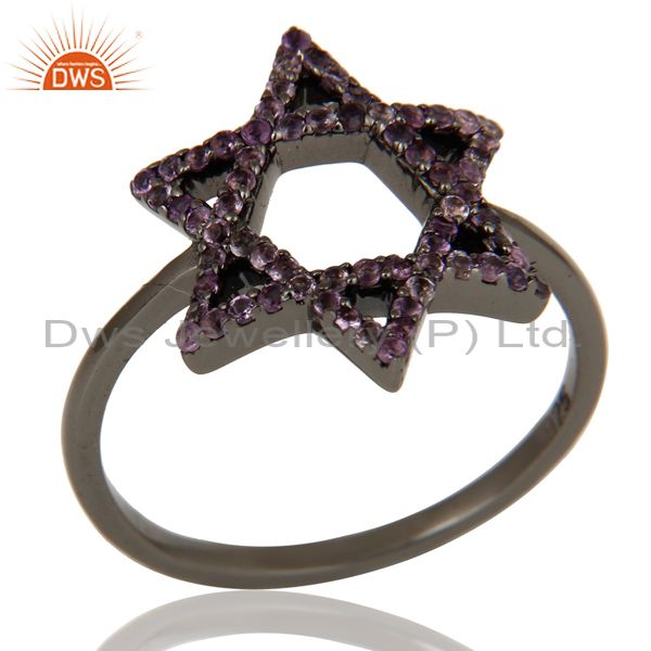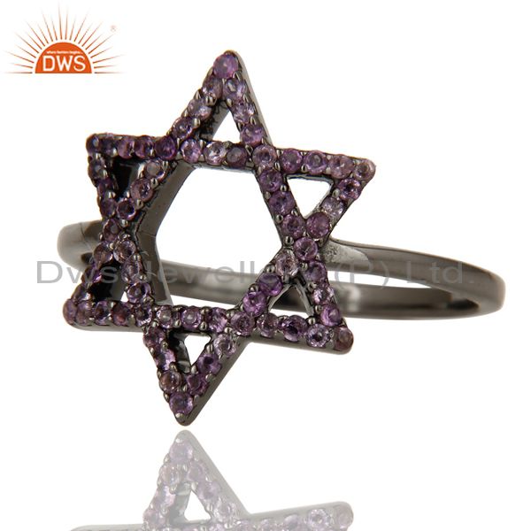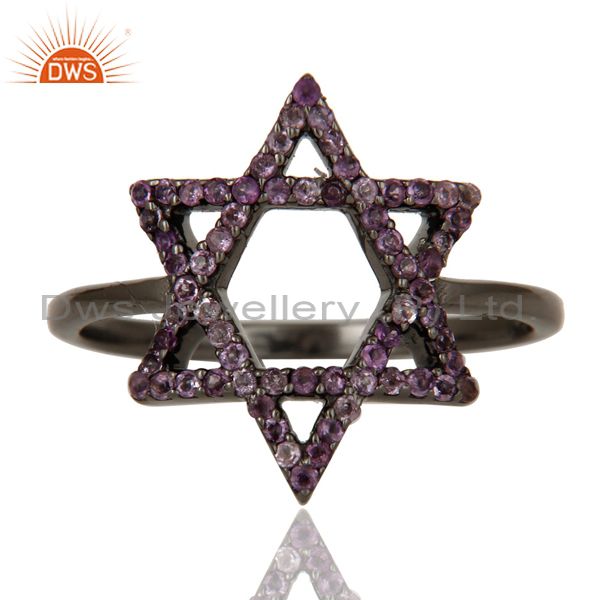 Amethyst and Oxidized Sterling Silver Star Design Ring