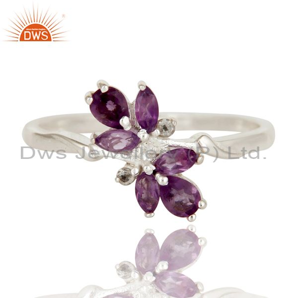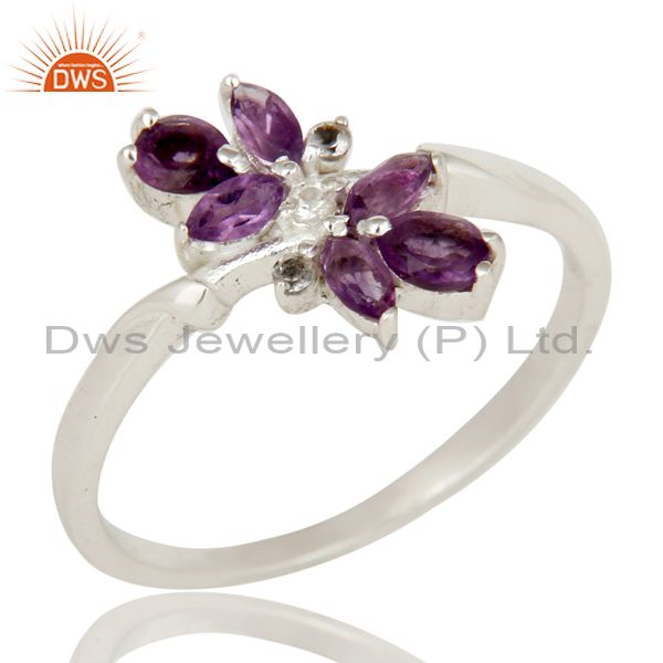 Amethyst And White Topaz Solid Sterling Silver Statement Ring Gemstone Ring