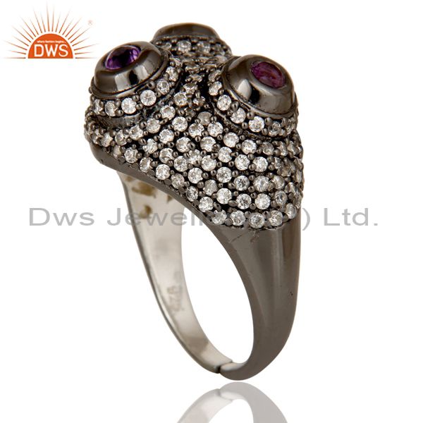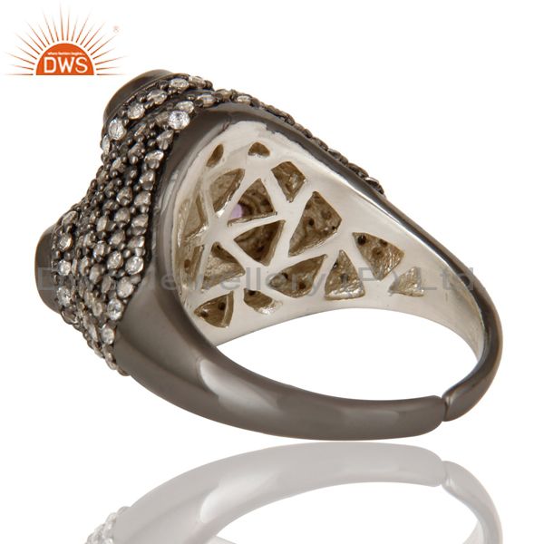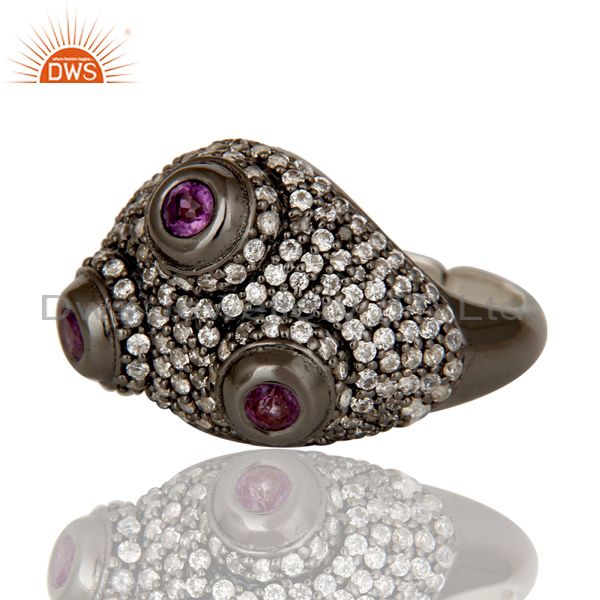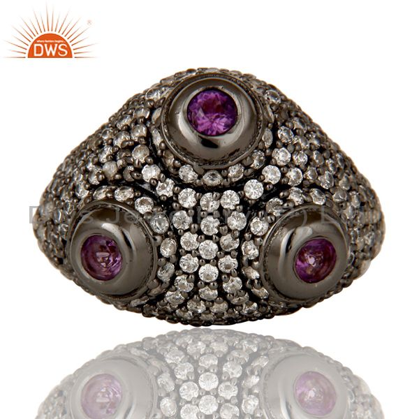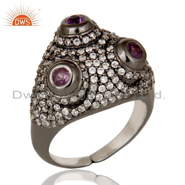 Amethyst and White Zircon Victorian Estate Style Sterling Silver Ring