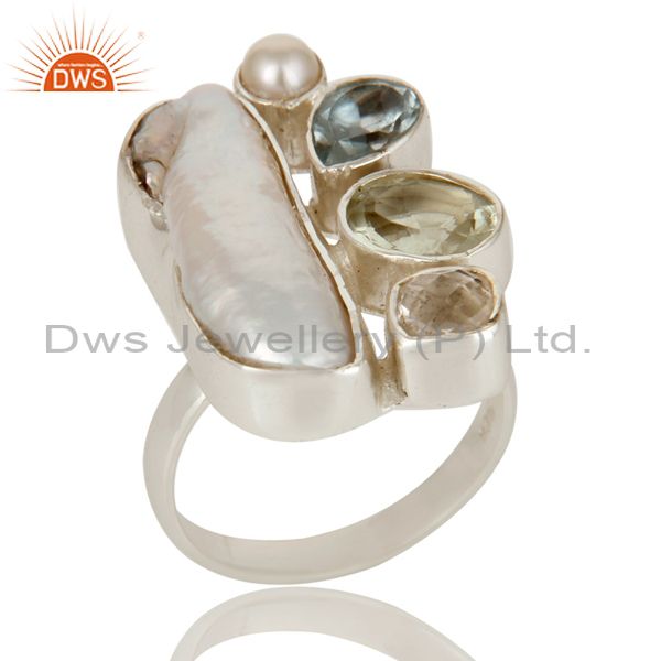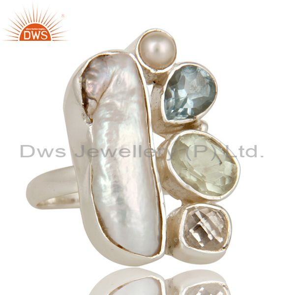 Amethyst, BT, Fresh Water Pearl Multi Gemstone Handmade Ring