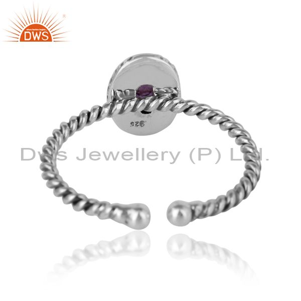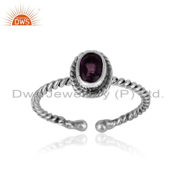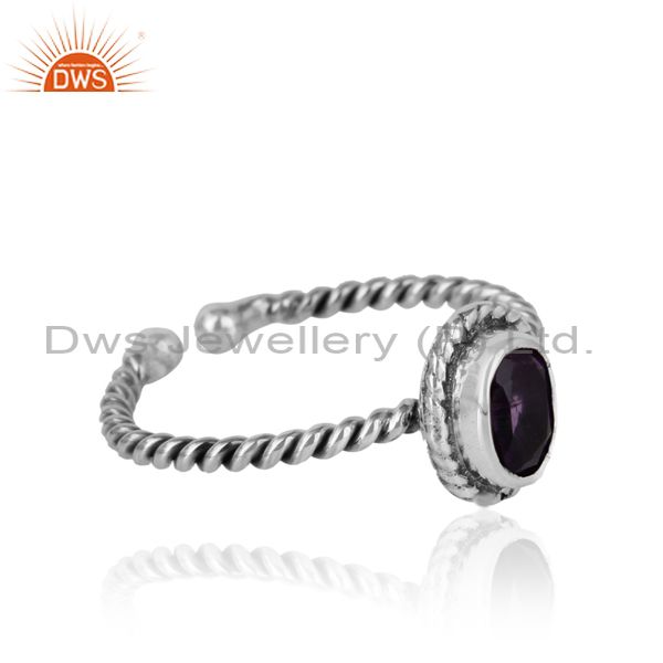 Amethyst Gemstone Designer Twisted Silver Oxidized Ring Jewelry