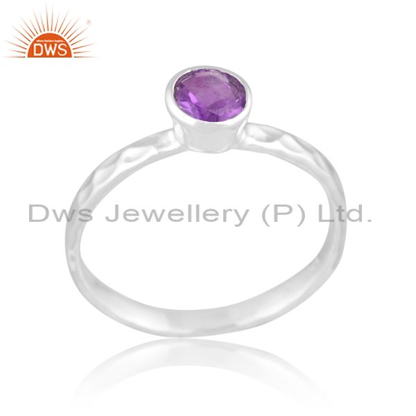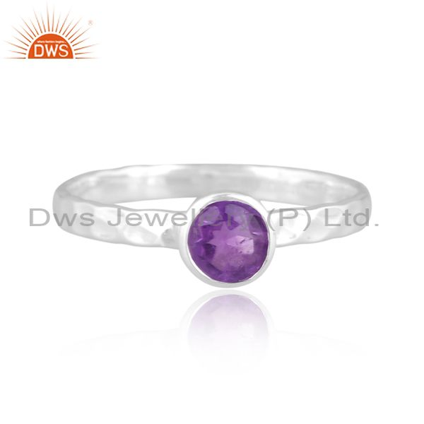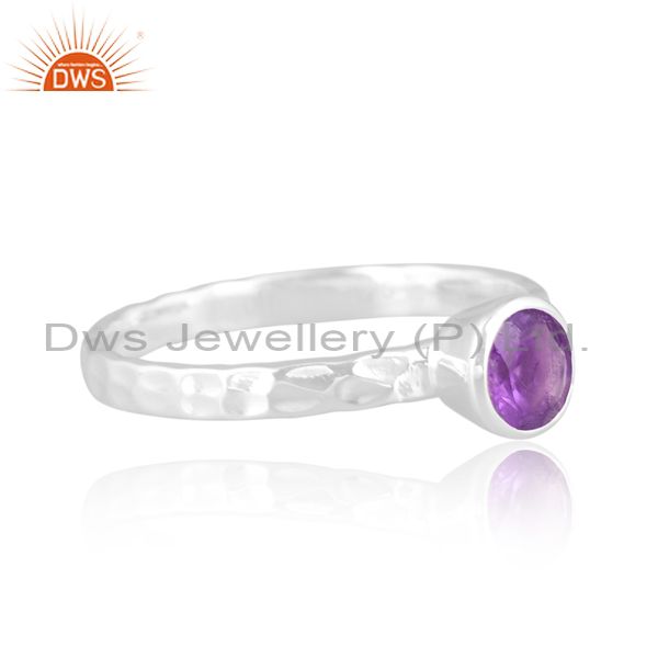 Amethyst Set Fine Sterling Silver Handhammered Textured Ring