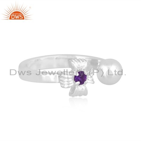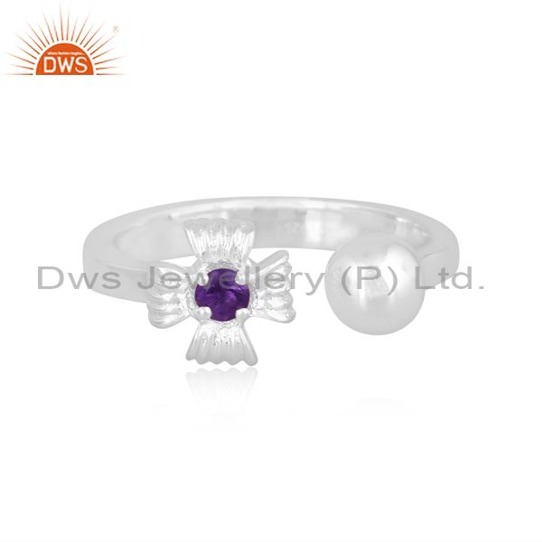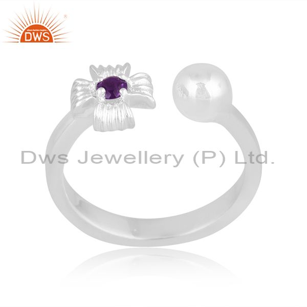 Amethyst Set Fine Sterling Silver Handmade Open Fancy Ring