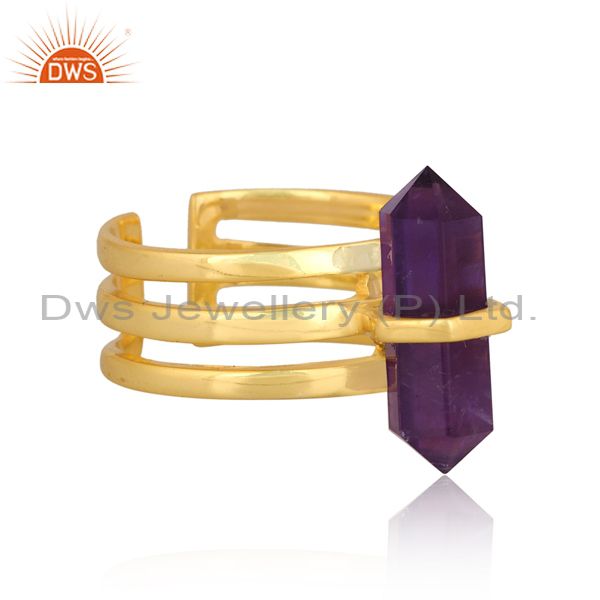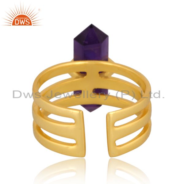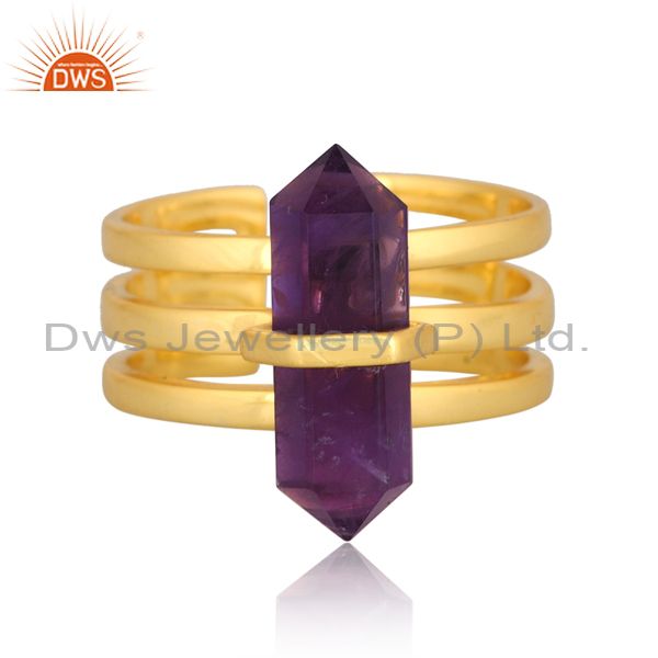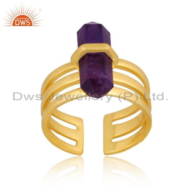 Amethyst Set Gold On 925 Sterling Silver Pendant Style Ring