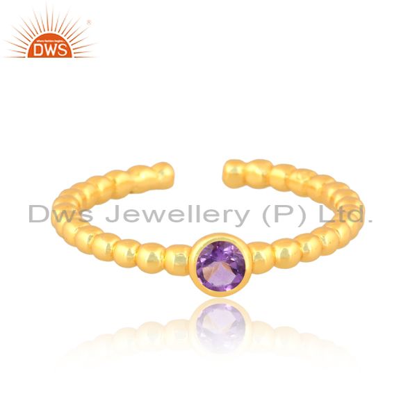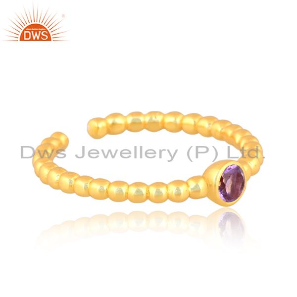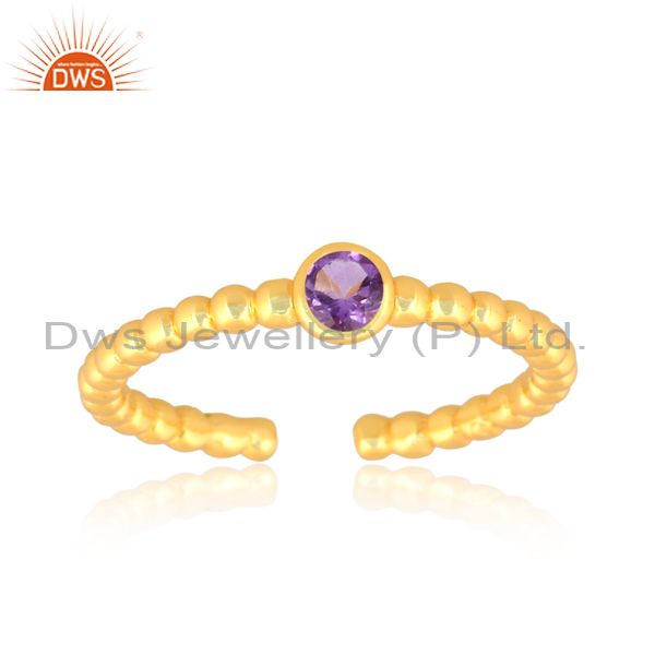 Amethyst Set Gold On Sterling Silver Handmade Pattern Ring