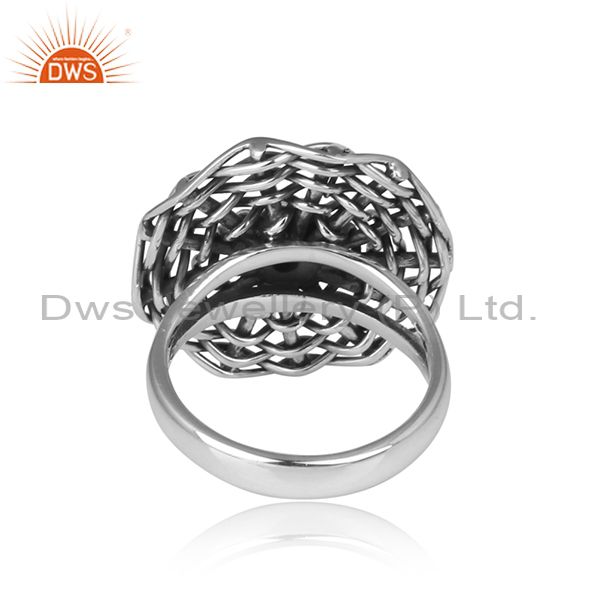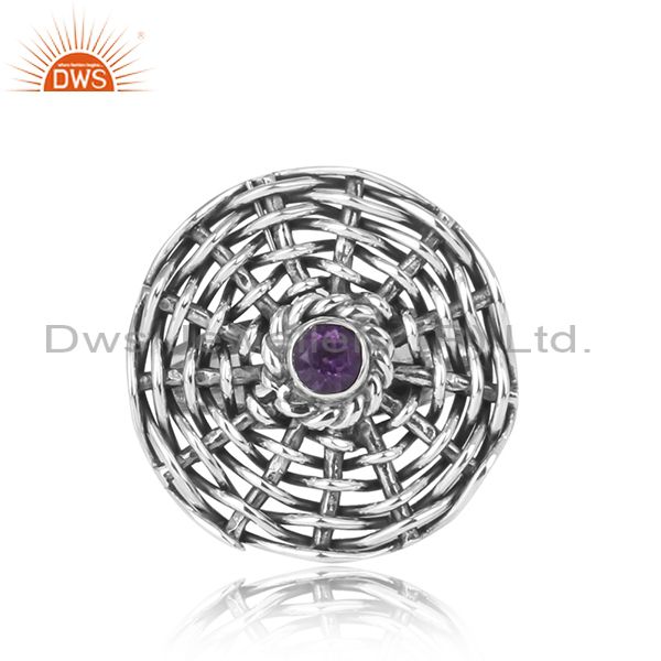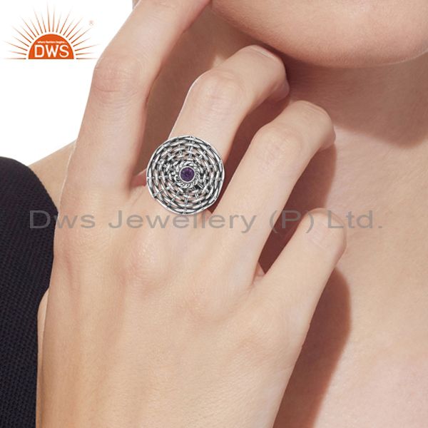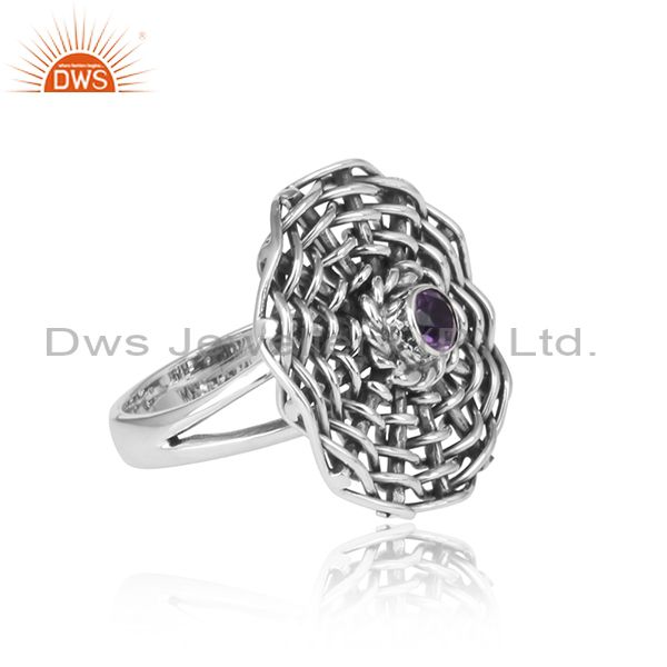 Amethyst Set Woven Style Oxidized Silver Handmade Ring