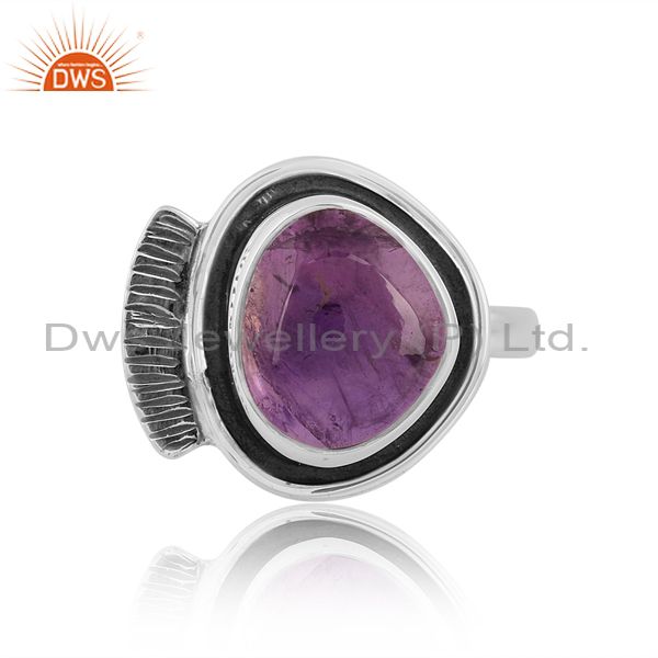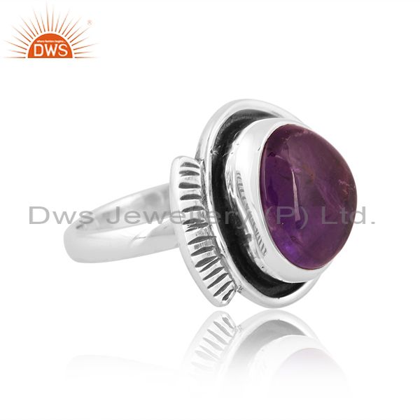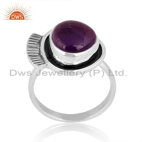 Amethyst With Sterling Silver Cabochon Oxidized Ring