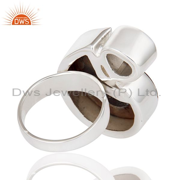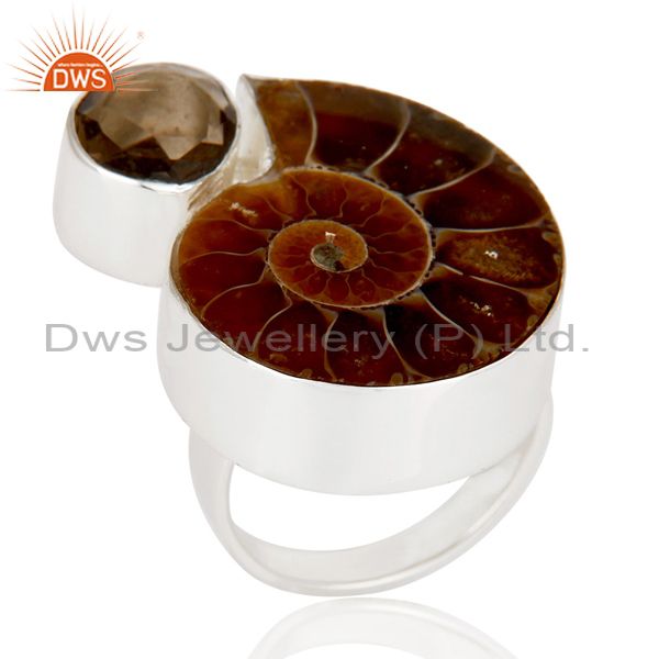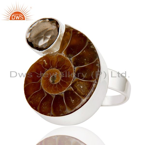 Ammonite & Smokey Topaz Sterling Silver Handmade Simple Setting Statement Ring