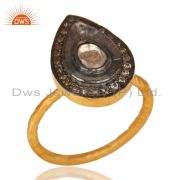 Antique Cut Crystal Quartz Gold Plated 925 Sterling Silver Victorian Style Ring