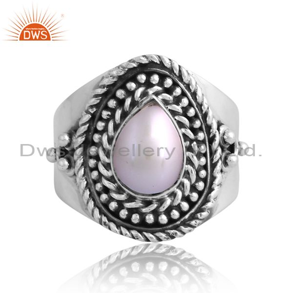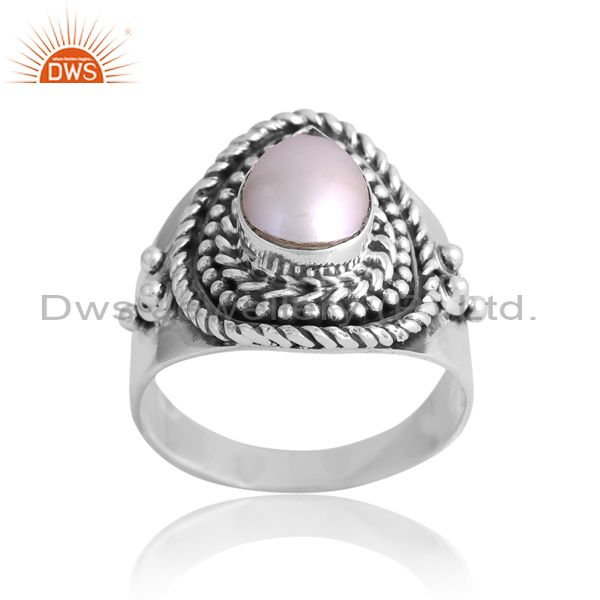 Antique Model Silver Ring With Pear Pearl Cabushion Stone