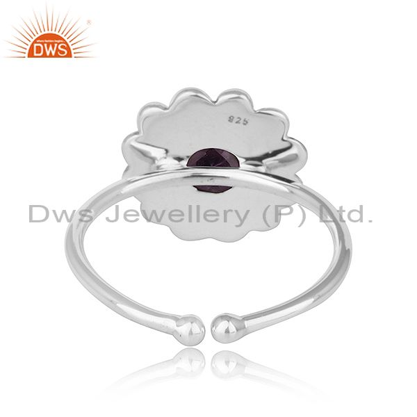 Antique Oxidized 92.5 Silver Designer Amethyst Gemstone Ring Jewelry