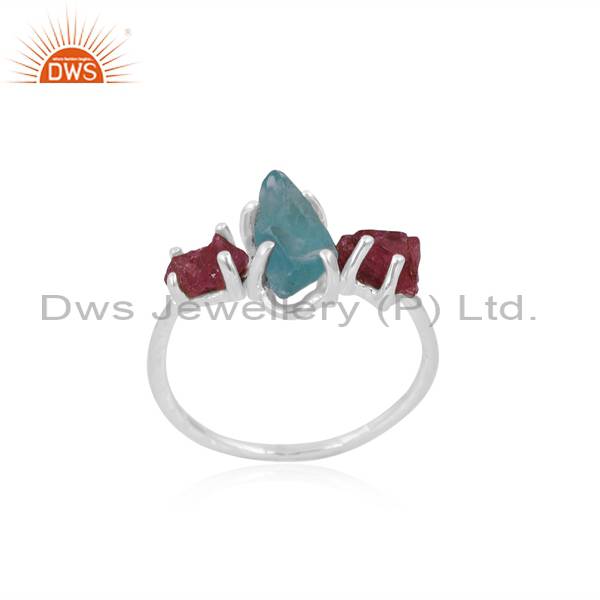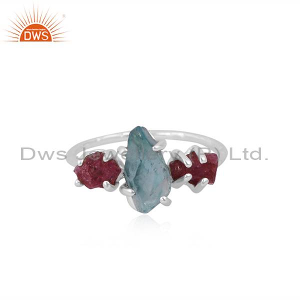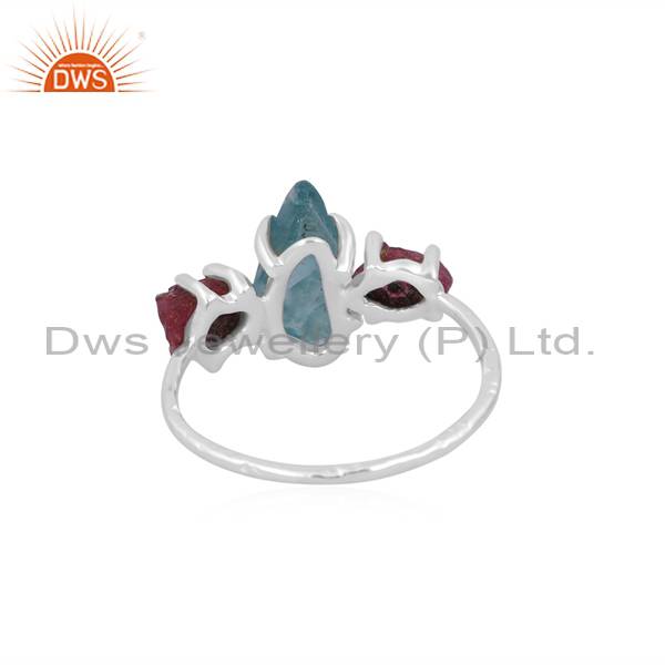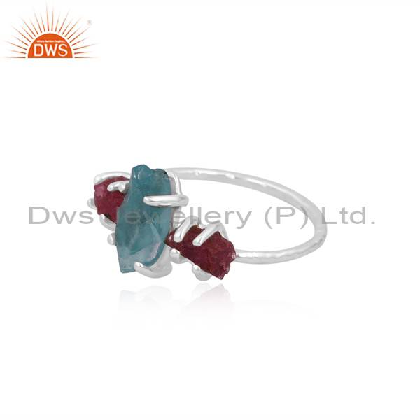 Apatite & Double Pink Tourmaline Sterling Silver Ring