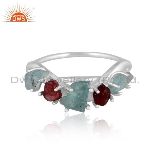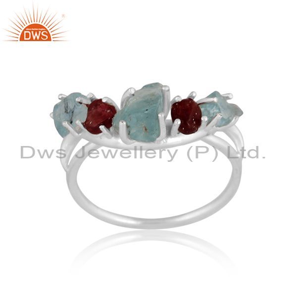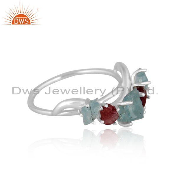Apatite And Spinel Ruby Set Fine 925 Silver Statement Ring
