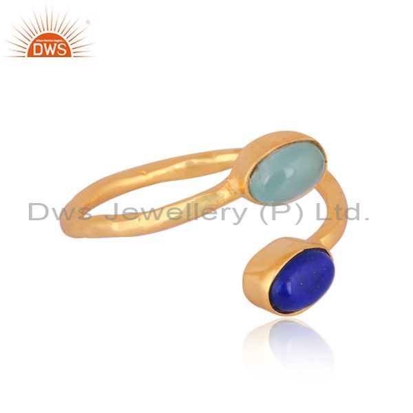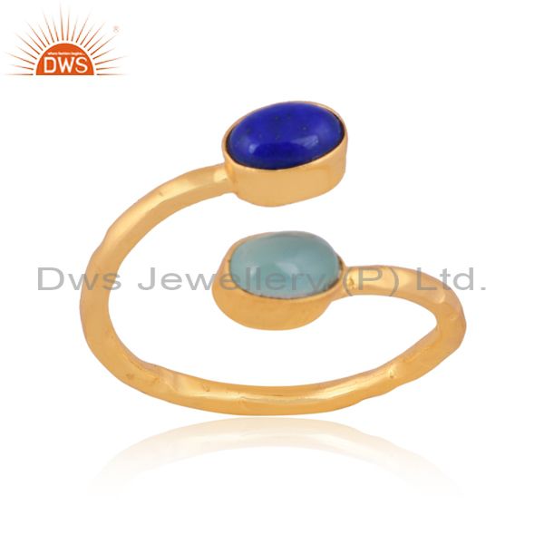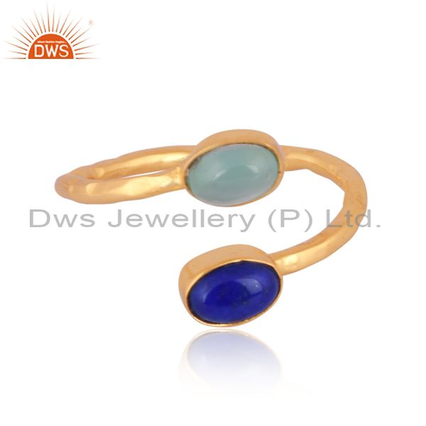 Aqua Chalcedony And Lapis Set Gold On 925 Silver Twist Ring