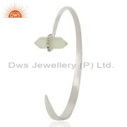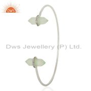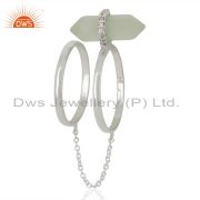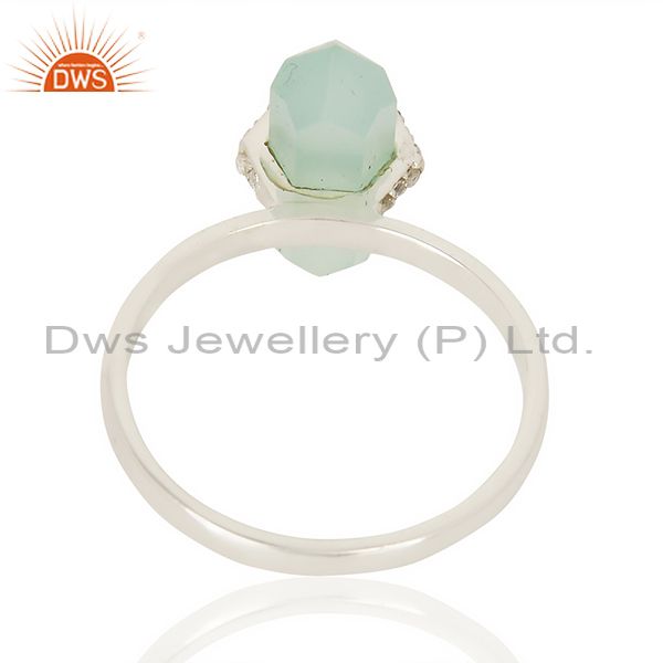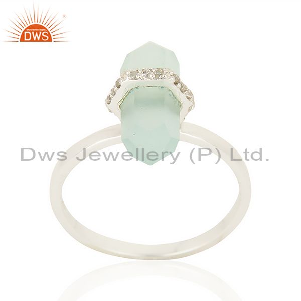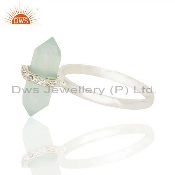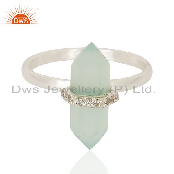 Aqua Chalcedony Cz Studded Double Terminated Pencil 92.5 Sterling Silver Ring