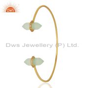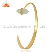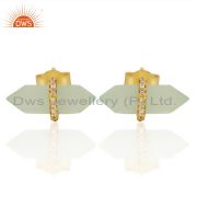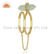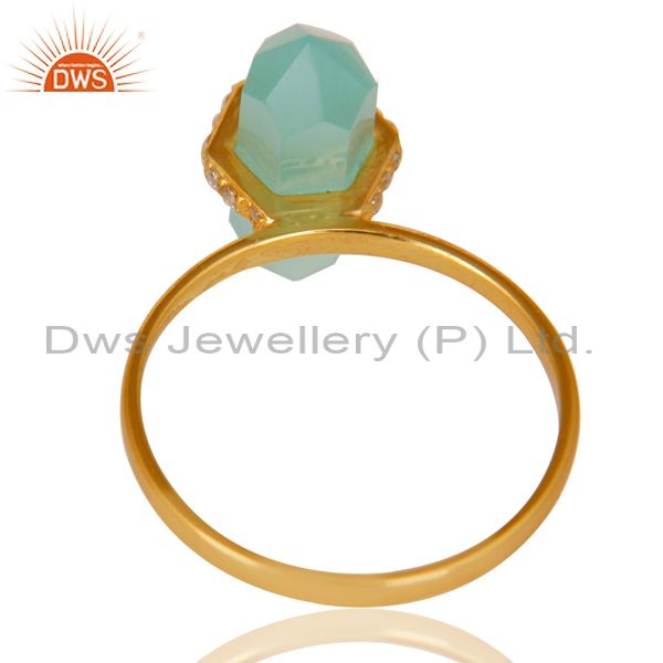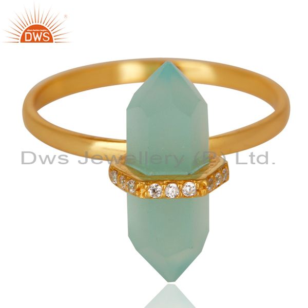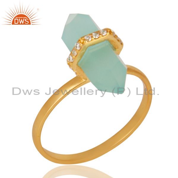 Aqua Chalcedony Cz Studded Double Terminated Pencil Gold Plated Silver Ring