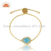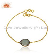 Aqua Chalcedony Gemstone 925 Silver Yellow Gold Plated Ring Manufacturer India