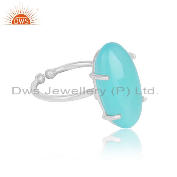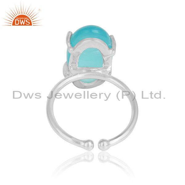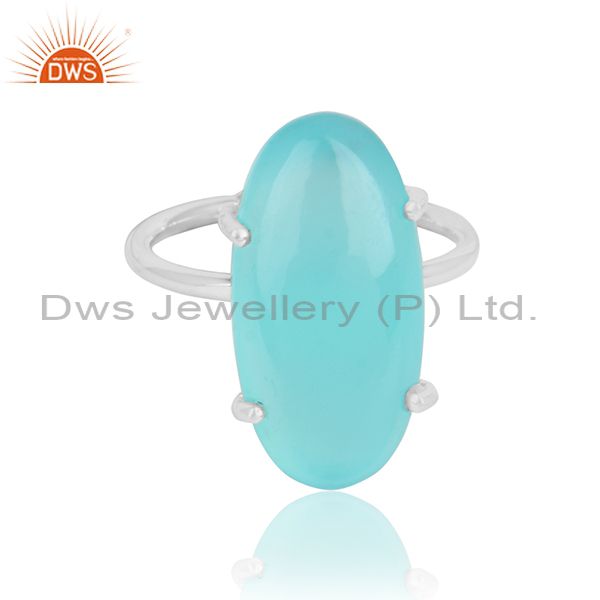 Aqua Chalcedony Gemstone Prong Set 925 Sterling Fine Silver Rings