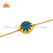 Aqua Chalcedony Gemstone Sterling Silver Stacking Ring With Gold plated