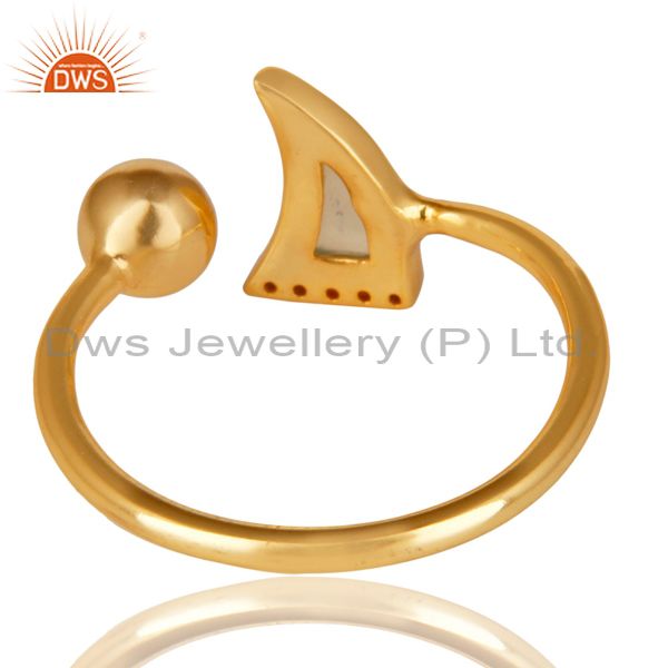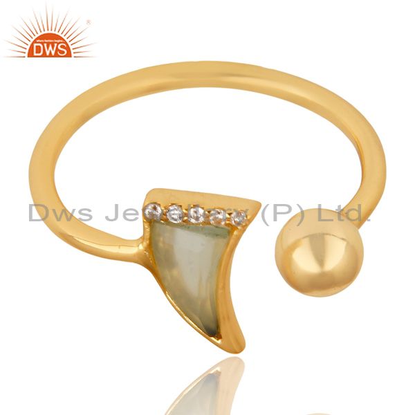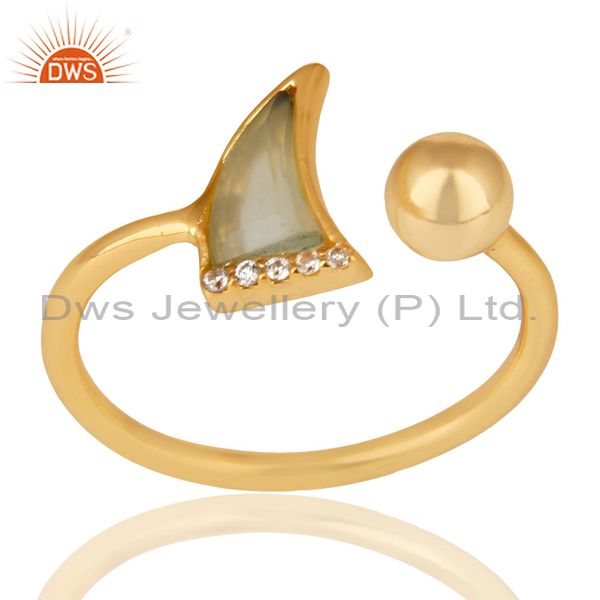 Aqua Chalcedony Horn Ring Cz Studded Ball Ring Gold Plated Sterling Silver Ring