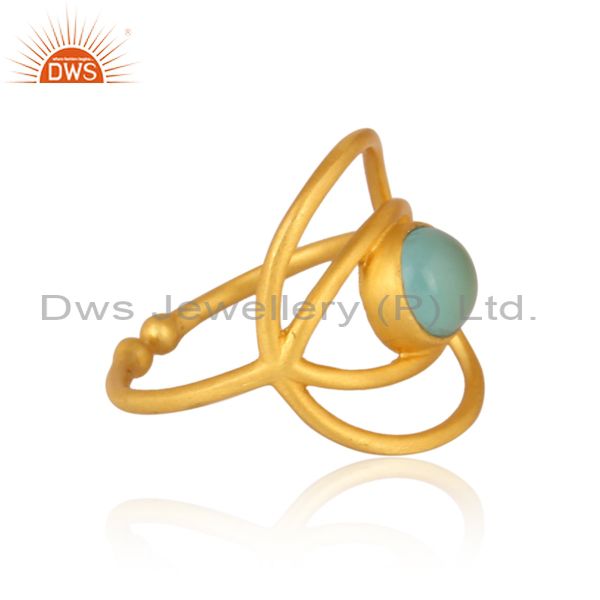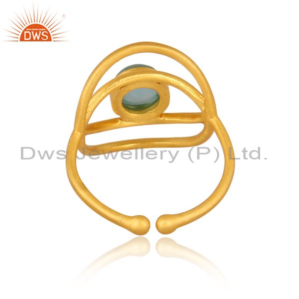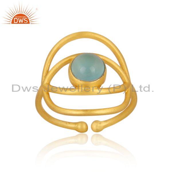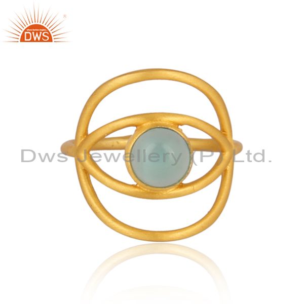 Aqua Chalcedony Set Gold On 925 Silver Evil Eye Classic Ring