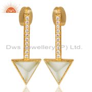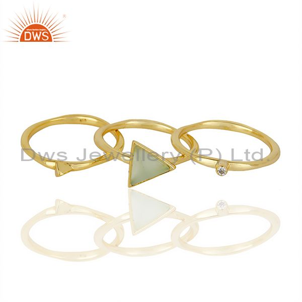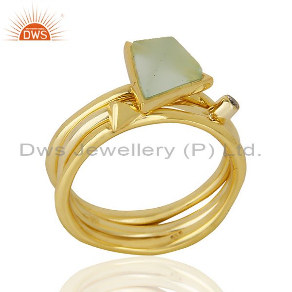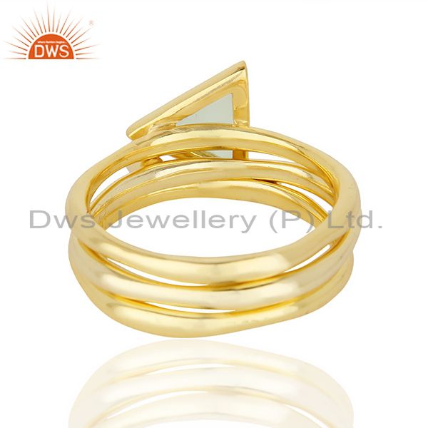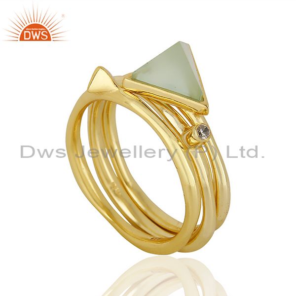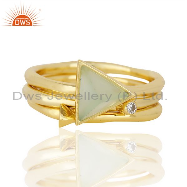 Aqua Chalcedony Triangle Cut Gemstone Stacking 14K Gold Plated 92.5 Silver Ring