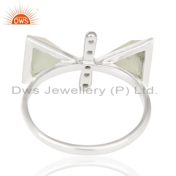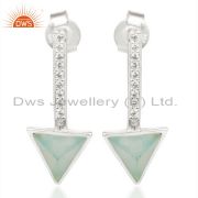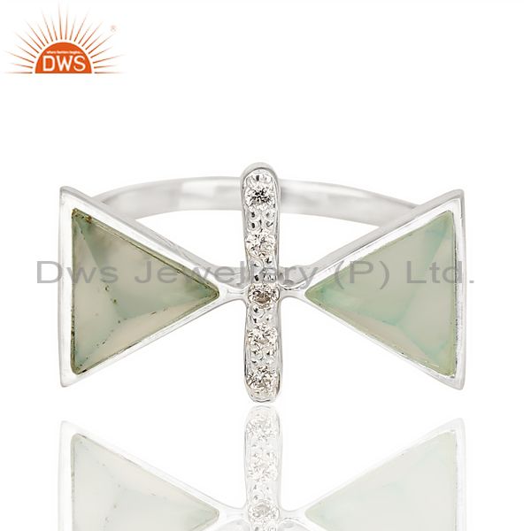 Aqua Chalcedony Triangle Cut Pyramid Cz Studded Solid 92.5 Sterling Silver Ring
