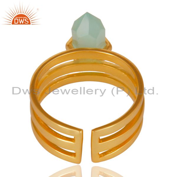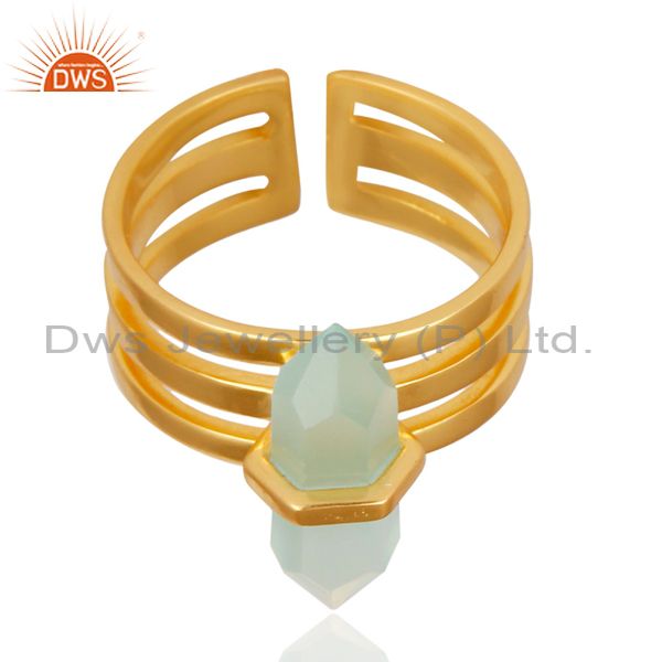 Aqua Chalcedony Wide Horn Adjustable 14K Gold Plated Sterling Silver Ring