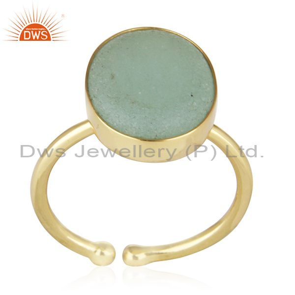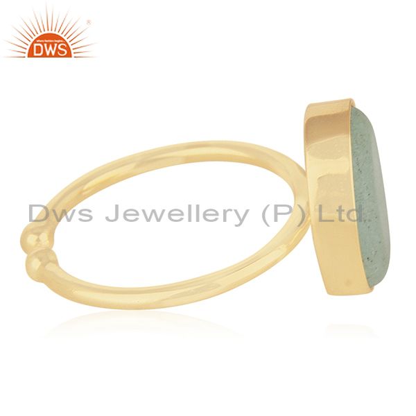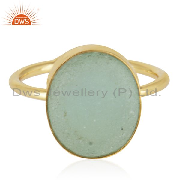 Aqua Gemstone 925 Silver Handmade Gold Plated Statement Ring Wholesale