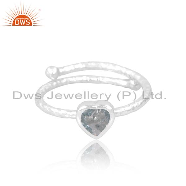 Aquamarine Engagement Ring: Silver Heart Design