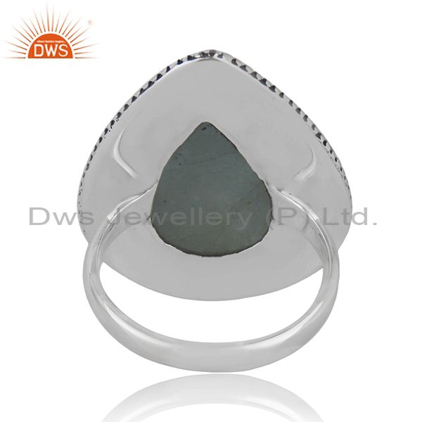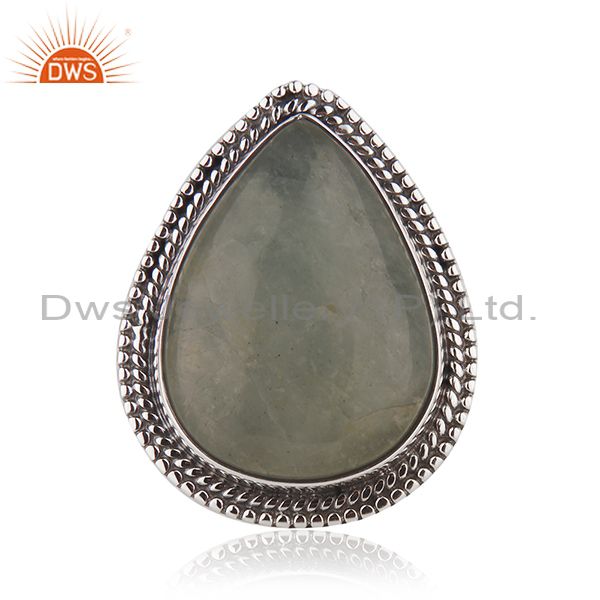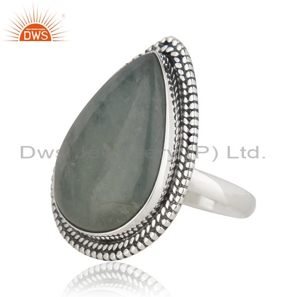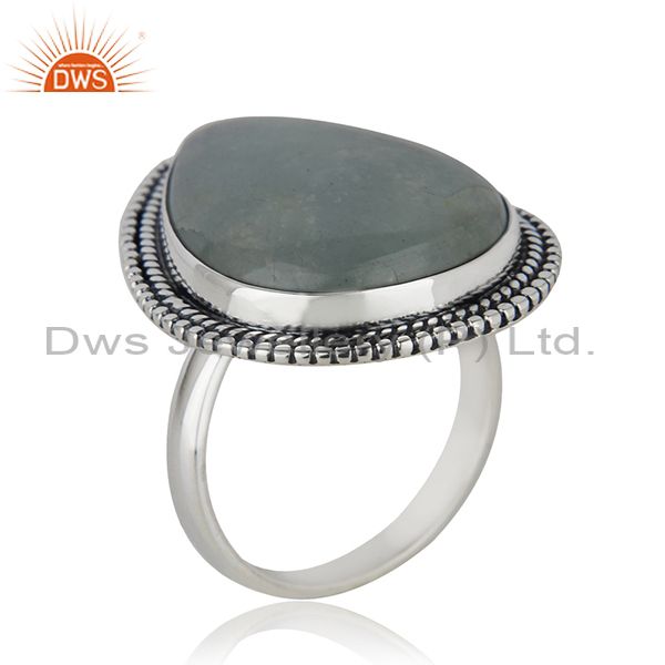 Aquamarine Gemstone Designer 925 Silver Oxidized Ring Jewelry