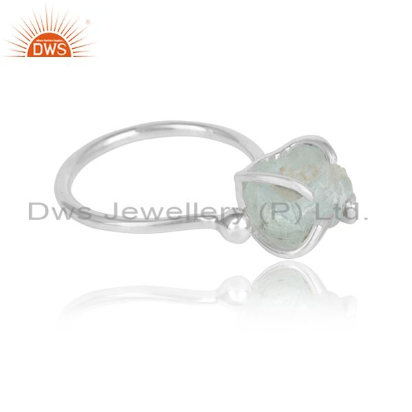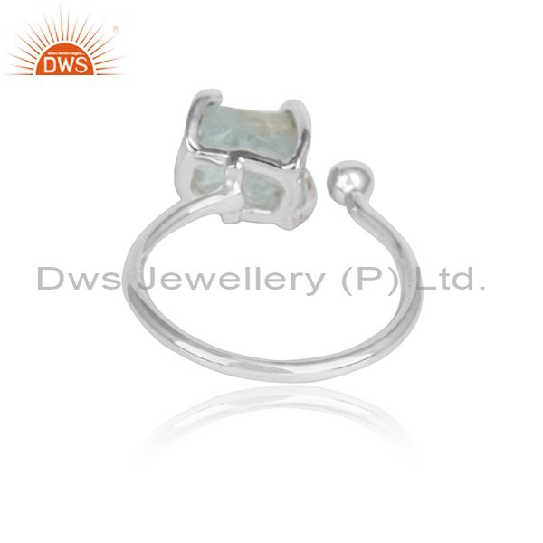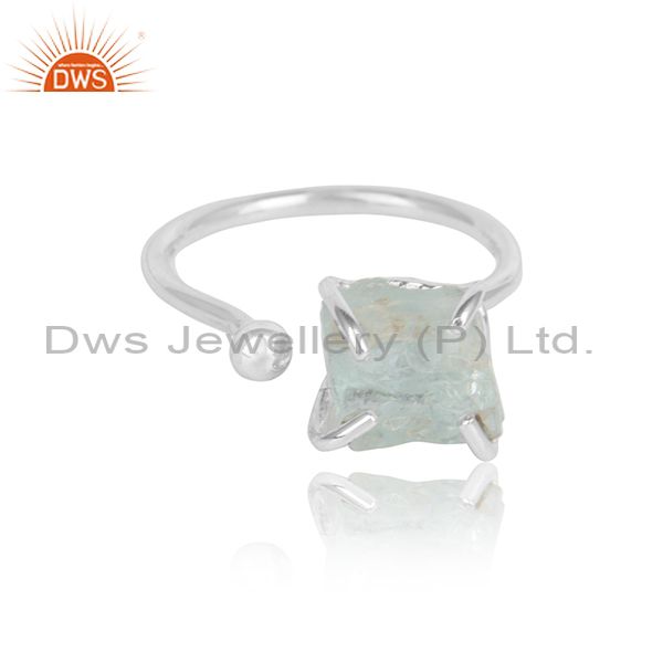 Aquamarine Gemstone Prong Set Sterling Silver Designer Rings