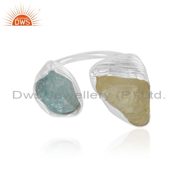 Aquamarine Lemon Topaz Gemstone 925 Sterling Silver Girls Rings