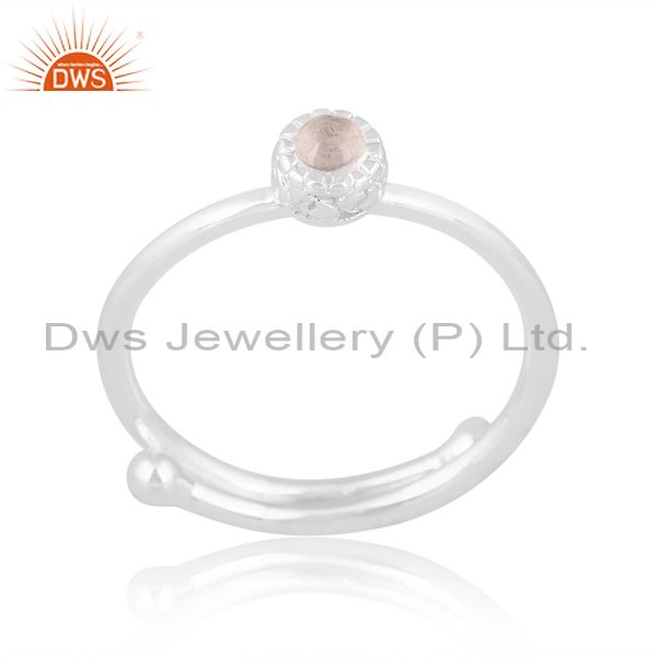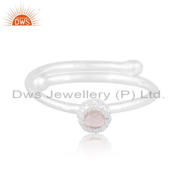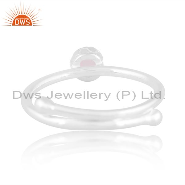 Aquamarine Round Cabochon Gem On White Sterling Silver Ring