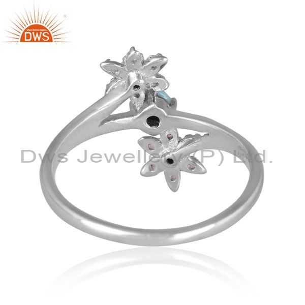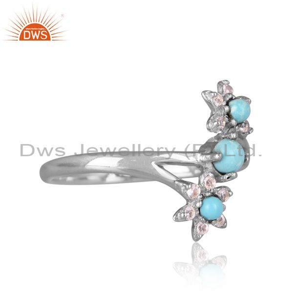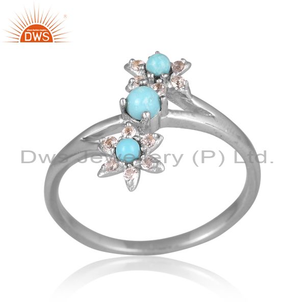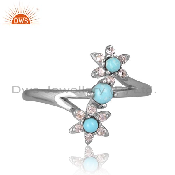 Arizona Turquoise & White Topaz With Silver Gold Ring