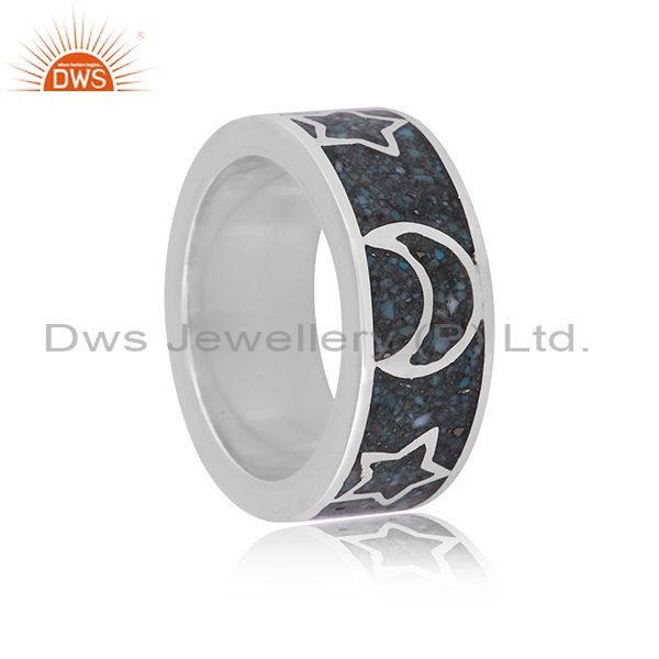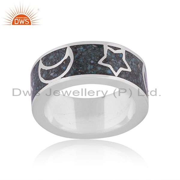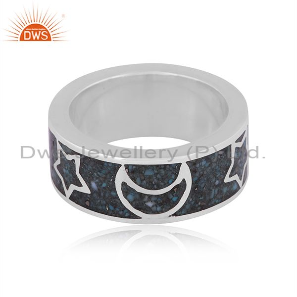 Arizona Turquoise Fine Silver Stars And Moons Embossed Ring