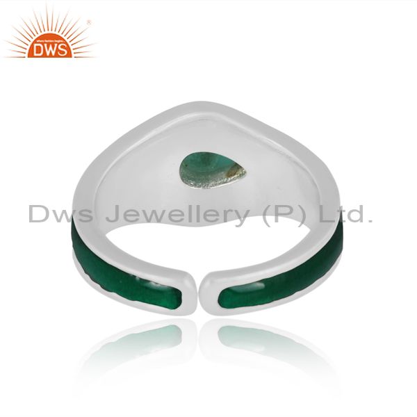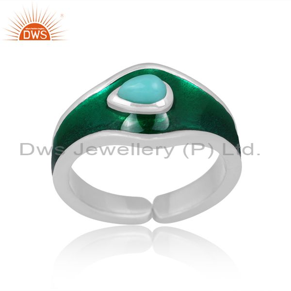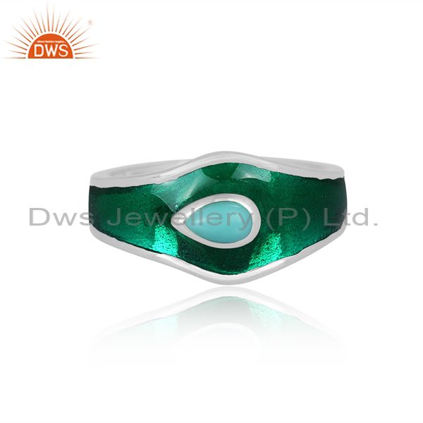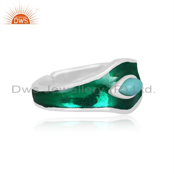 Arizona Turquoise Set Fine Silver Green Enameled Fancy Ring